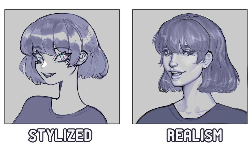✦ My art style ranges from heavily stylized to more realistic. Below is an example of the difference.✦ When you fill out the inquiry form, there will be a section to indicate which style you are interested in or if you would like something somewhere in between. The pricing for either style is the same.